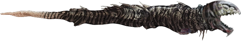 Tiger Threshers are barracuda-like fish with six lateral fins, the last pair modified into tendrils. Their slender body is silvery with darker stripes and spots, including a black stripe around its neck. They are capable of doing massive damage to a submarine and its crew with a single attack. They will favor going after humans out in the water, and their razor-sharp teeth inflict heavy bleeding on their prey.