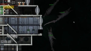 Tiger Threshers will favor going after humans out in the water, and their razor-sharp teeth inflict heavy bleeding on their prey. Tiger Threshers are capable of entering the submarine through holes in the hull.